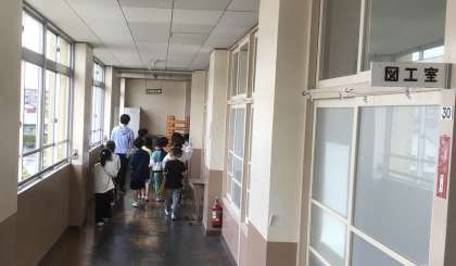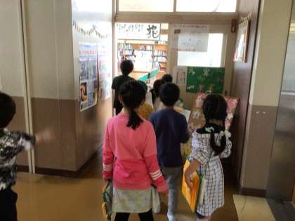 2年生が1年生に朝日小学校の中を案内しました。何をする教室なのかを、2年生が上手に伝えたので、1年生も朝日小学校のことをくわしく知ることができました。
