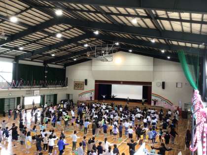 6年生が中心となって企画したダンス、名刺交換、クイズなどがとても楽しくて、会場は笑顔であふれていました。朝日っ班のみんなとも仲良くなりました。今度は6月に朝日っ子班で集まって、「朝日っ子遊び」を行います。