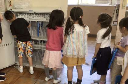 保管庫から取り出した後、実際に操作して学習用タブレットを立ち上げました。保管庫にしまう練習もしました。今後は、写真を撮ったり、インターネットを使って調べたりする練習をしていきます。