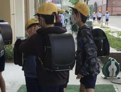 企画委員が、あいさつをきっかけに学校や学級のみんなともっと仲よくなり、みんなで気持ちよく過ごしたいという思いからキャンペーンを企画しました。低学年は20人、中学年は30人、高学年は40人以上の人と、目を見て大きな声であいさつした後にハイタッチすることを目標としており、クラス全員が目標を達成している日が多いです。あいさつの輪が広がっていて、学校全体がとても明るい雰囲気になっています。