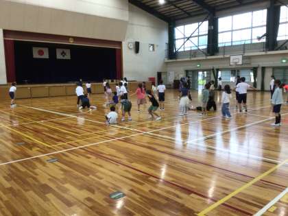 1組と2組は体育館で「だるまさんがころんだ」、3組は運動場で「鬼ごっこ」をして楽しみました。