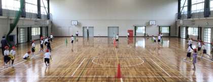 ハンドテニスの学習をしています。この日は、遠く離れたペアの友達にボールを打ち返す練習をしました。