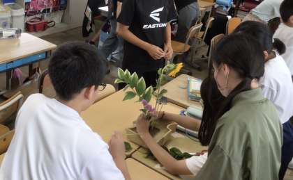 「JAPAN PRIDE」という学習テーマのもと、古き良き日本の伝統文化を学習しています。この日は、華道の体験を通して、日本文化の奥深さや、受け継ぐ人の思いを学びました。