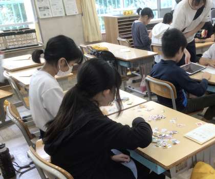 これまでに回収したベルマークを、種類ごとに分けました。引き続き集めていきますので、家にありましたら、ぜひ学校に持ってきてください。