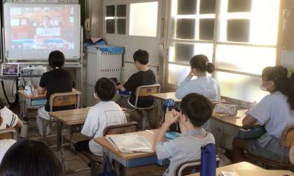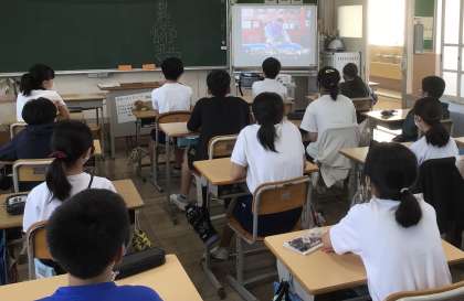 熱中症対策の一環として、オンラインで全校集会を行いました。