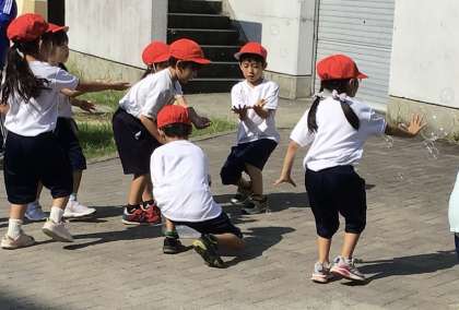2年生が、しゃぼん玉を作りました。手に乗せてうれしそうでした。