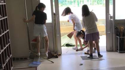 学校公開日の朝、6年生が昇降口や階段を掃除していました。来ていただくみなさんに気持ちよく見ていただきたいという思いからです。とてもさわやかな気持ちになりました。