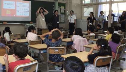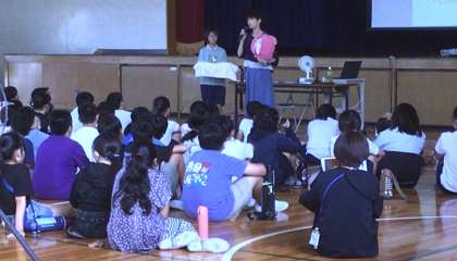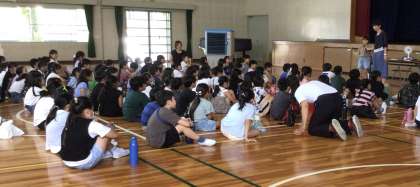 2、3年生と4年生は体育館で、1年生は教室で行いました。保護者の方にも沢山御参加いただきました。
