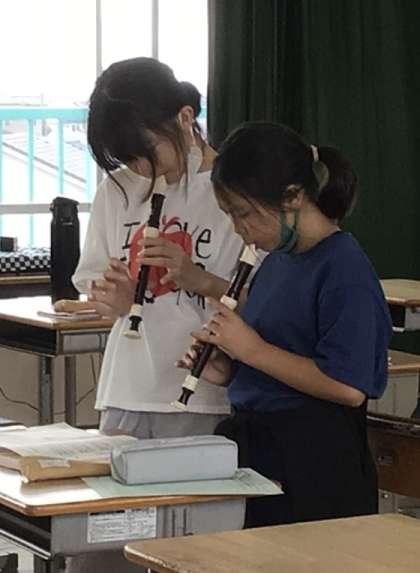 5年生が、音楽科の授業で、合奏の練習をしていました。