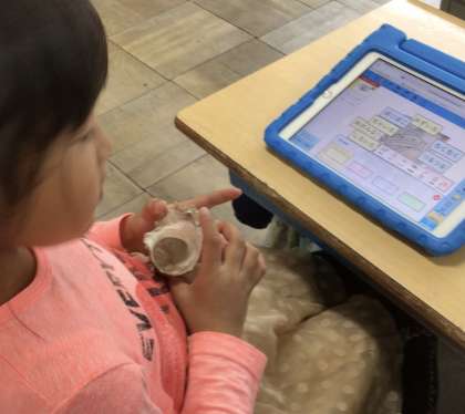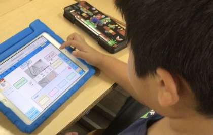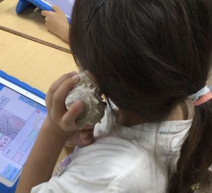 1年生、国語科の授業で、発見したことを、タブレットに入力しました。