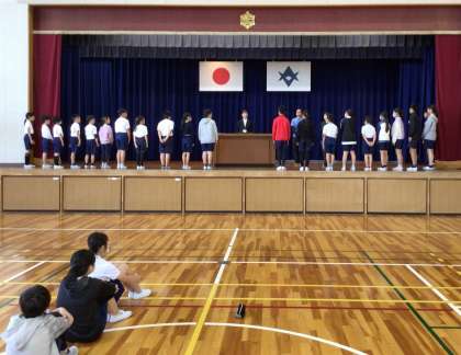 朝日タイムに、後期の各学級の学級委員(3〜6年)と各委員長・副委員長を任命しました。