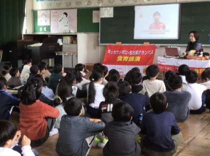 3年生は、グランパスの食のアンバサダーの方に、食育の授業をしていただきました。