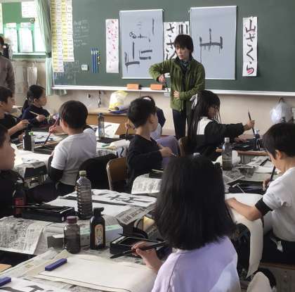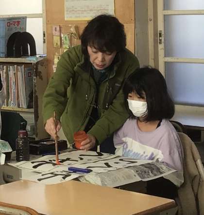 3年生が、豊田書道連盟のボランティアの方に、書き初めの指導をしていただきました。