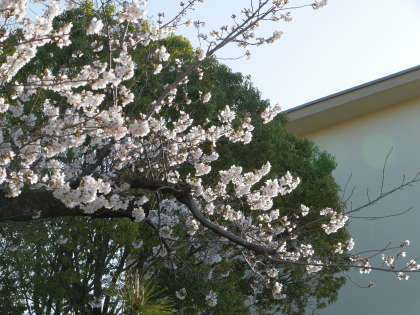 満開の桜が子どもたちの登校を待っています!