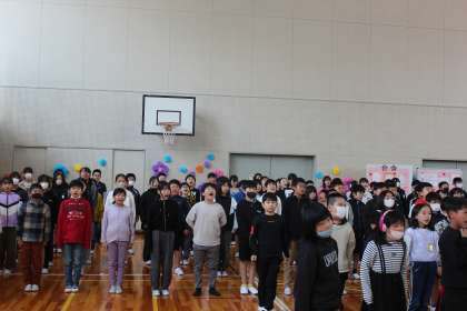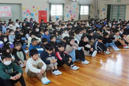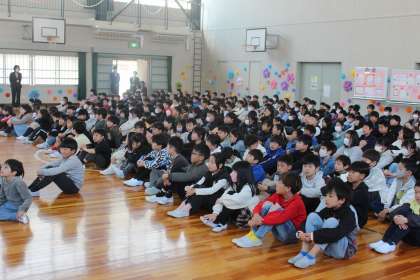 進級認定。2〜4年生は一つ上の学年になりました。立派な態度で行事に参加していました。