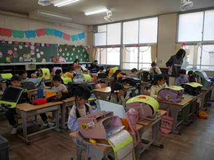 最初の朝の会は荷物の片づけ方から。