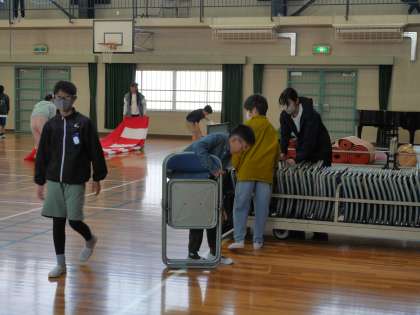 朝、6年生が入学式・始業式の会場を片付けてくれました。さすが6年生!
