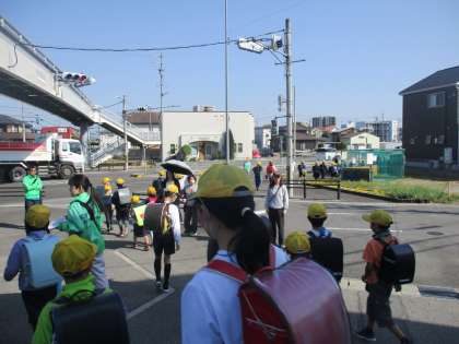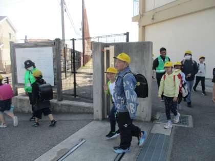 初めての全校一斉下校でしたので、教師も下校に付き添いました。通学路の危険箇所や集合場所の確認も行いました。