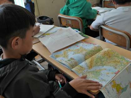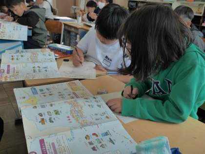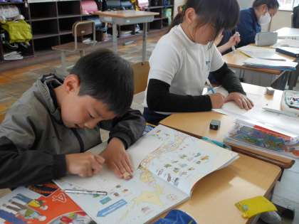 地図帳を見ながら、日本地図を描いていました。