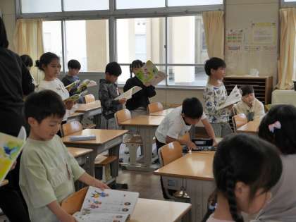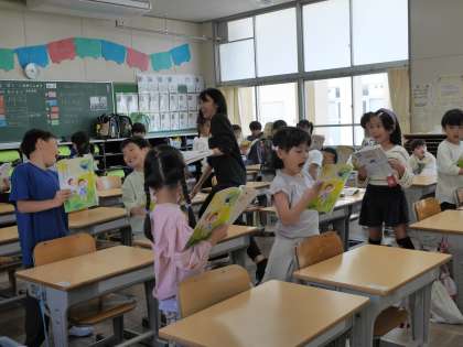 立つ姿勢や教科書の持ち方など、音読のしかたを確認していました。
