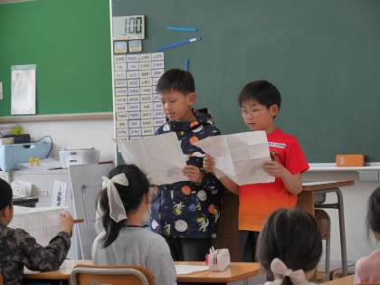 代表者の音読を聞きながら教材文を読んでいました。