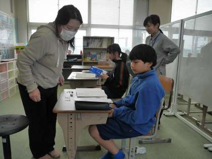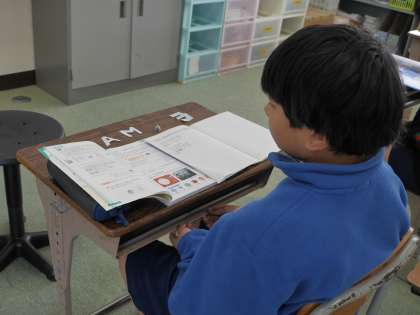 算数の線対称の図形について言葉の意味を確かめながら学んでいました。