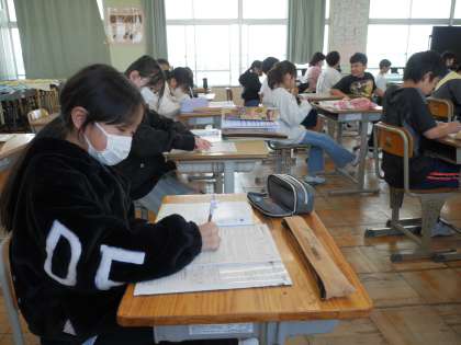 授業の終わりに学習の振り返りをしています。