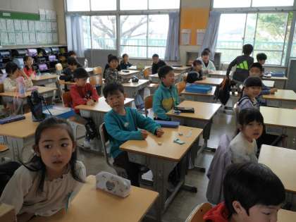 朝の教室の様子です。 もうすぐ朝の会が始まります。