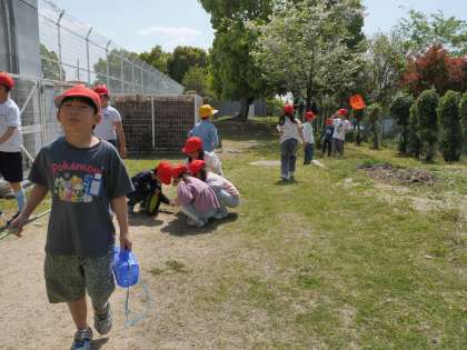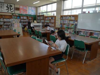 図書館で本を読む子、外で虫取りをする子など思い思いにリフレッシュしていました。