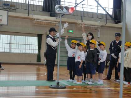 近隣校の交通指導員さんや豊田市交通安全協会の指導員さんのご協力で交通安全教室を実施しました。