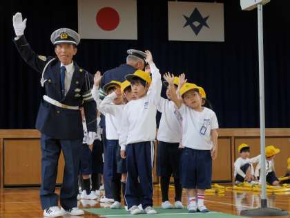 安全な道路の通行のしかたを学びました。