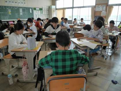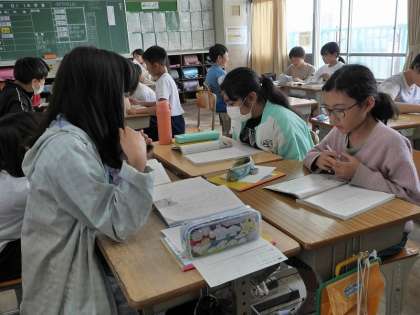 「おにぎり石の伝説」をグループで工夫して音読しました。