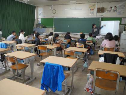5年生の算数は少人数指導を実施しています。半分の児童は別教室で学習しています。