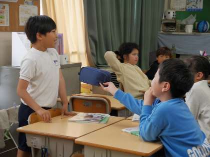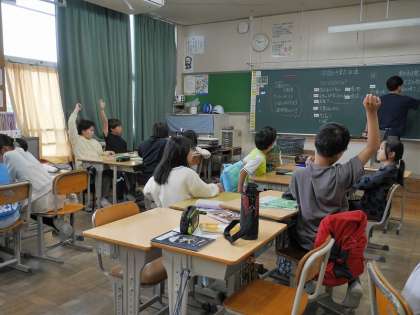 「外国から来たともだち」という資料について、外国人の友達にどう接すればよいのか意見を出し合っていました。