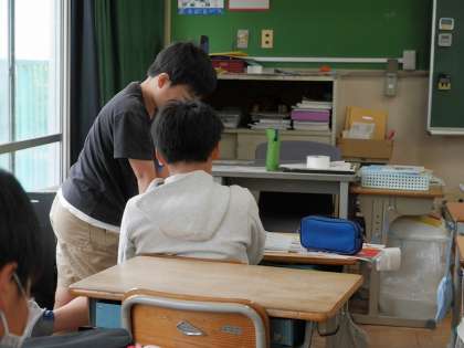 ミニ先生が困っている友達にアドバイスしていました。