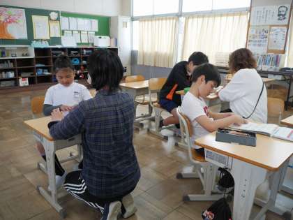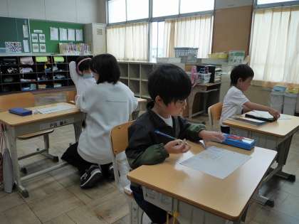 先生のアドバイスをもらいながら自分の課題に取り組んでいました。