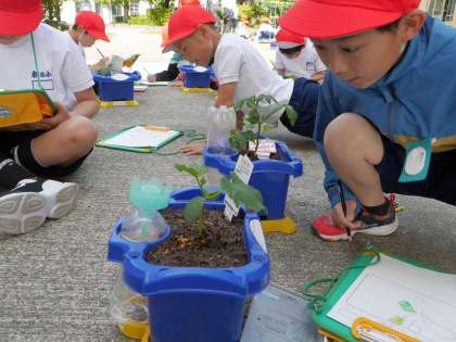 思い思いに野菜の苗を植えました。 育っていく様子をスケッチに残しています。