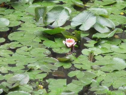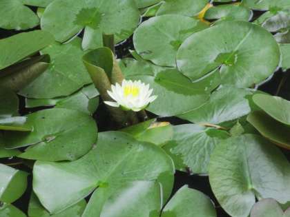 風の強い1日になりそうです。 ビオトープの睡蓮の花が開きました。