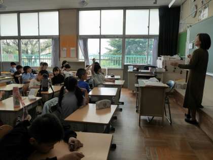 学校探検の下見の振り返りをしていました。