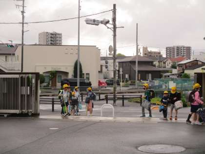 2年生の子どもたちが、登校早々先週植えた野菜の苗の様子を確認していました。