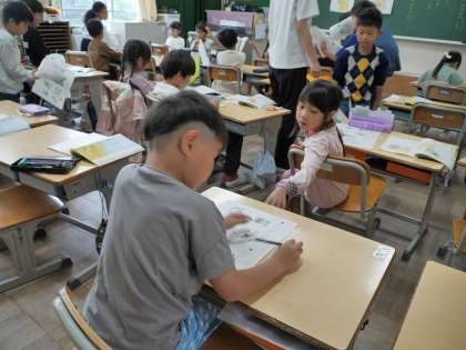 「とん こと とん」物語の場面の内容をみんなでたしかめていました。