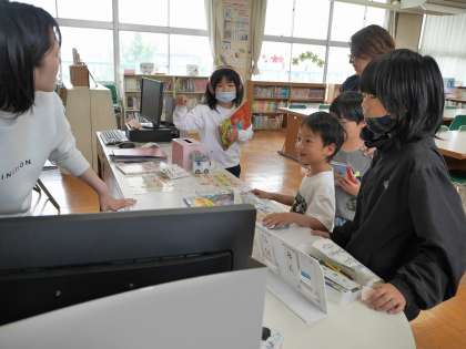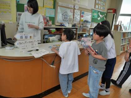 3組は図書館で本の返却・貸出をしました。1組は書写の学習をしました。