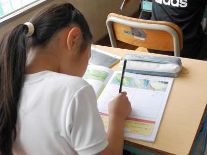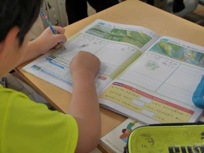 チョウの幼虫やさなぎの様子を観察し、ノートにスケッチしていました。