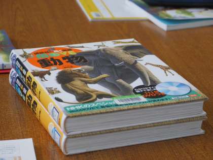 学校図書館司書さんに百科事典の使い方を教えてもらっていました。