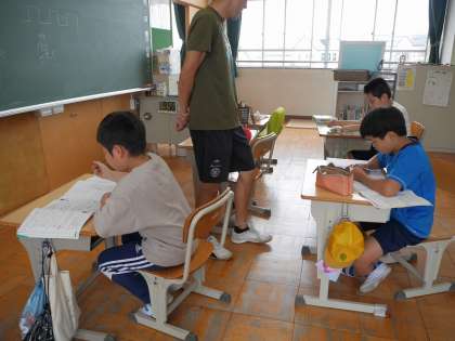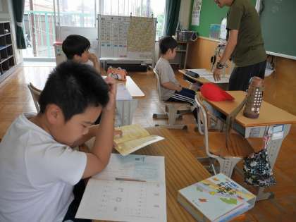 漢字の部首や算数の練習問題など自分に合った課題に取り組んでいました。