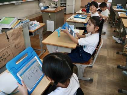 2年生活科 公開日 2025/05/20 更新日 2025/05/20 各学年から 育てている野菜の生長の様子を、学習用タブレットの「発表ノート」に記録していました。 手書き入力する子、文字認識機能で活字入力する子など、自分に合った方法で記述していました。 2年