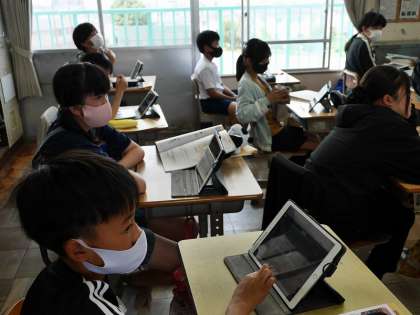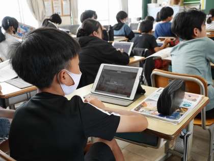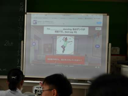 学習用タブレットのアプリを使って、英語の言い回しを確認していました。