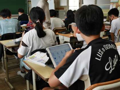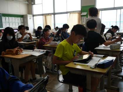 市役所のはたらきについて考えた後、豊田市役所のホームページを開いて、確認していました。