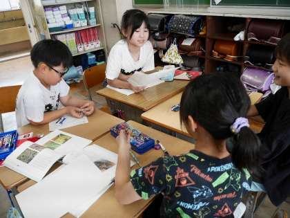「自然のかくし絵」段落ごとの内容をワークシートにまとめ、グループで確認の話し合いをしました。