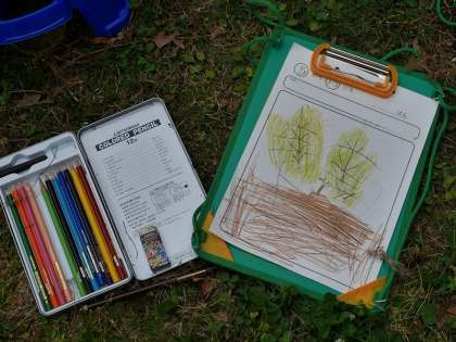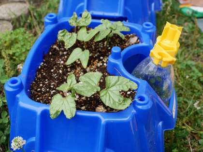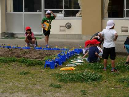 朝顔の双葉がたくさん出ました。 子どもたちが生長の様子をスケッチしていました。